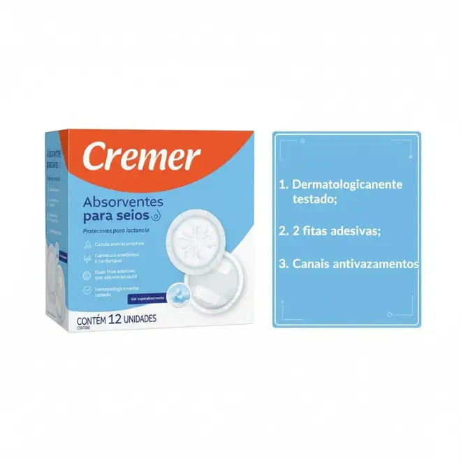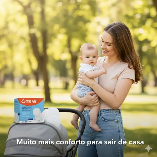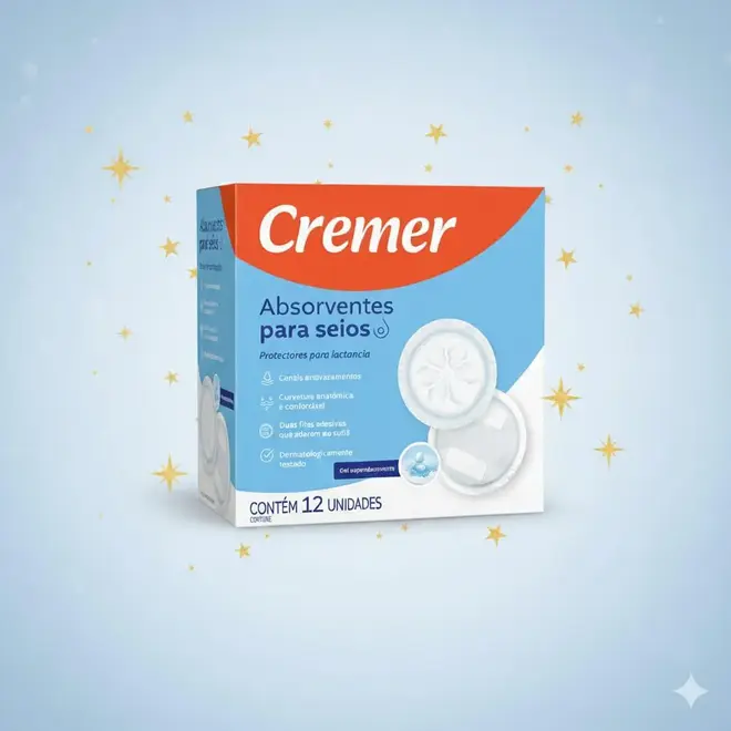 Os Absorventes para Seios Cremer foram desenvolvidos para oferecer conforto e segurança às mamães durante o período de amamentação. Com um design inteligente, eles ajudam a manter a pele seca e protegida, evitando vazamentos de leite que podem manchar a roupa e causar desconforto.