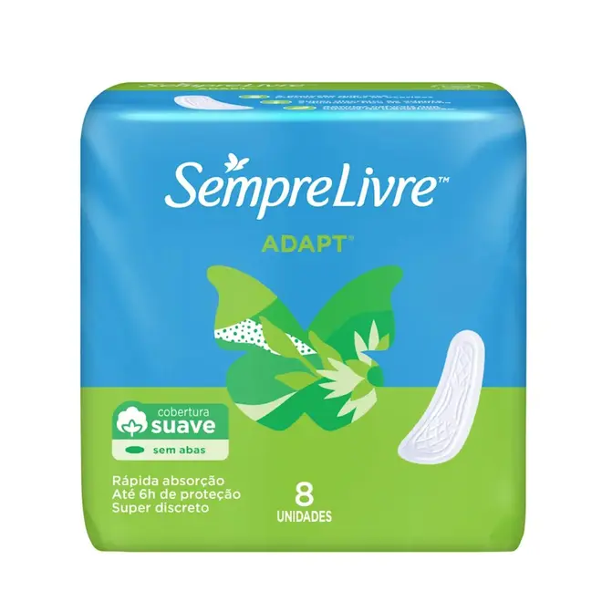 Com alta absorção que protege por até 6 horas, Sempre Livre Adapt tem um formato ideal que se ajusta ao corpo e a qualquer calcinha, além de acompanhar os movimentos, oferecendo 100% de proteção.