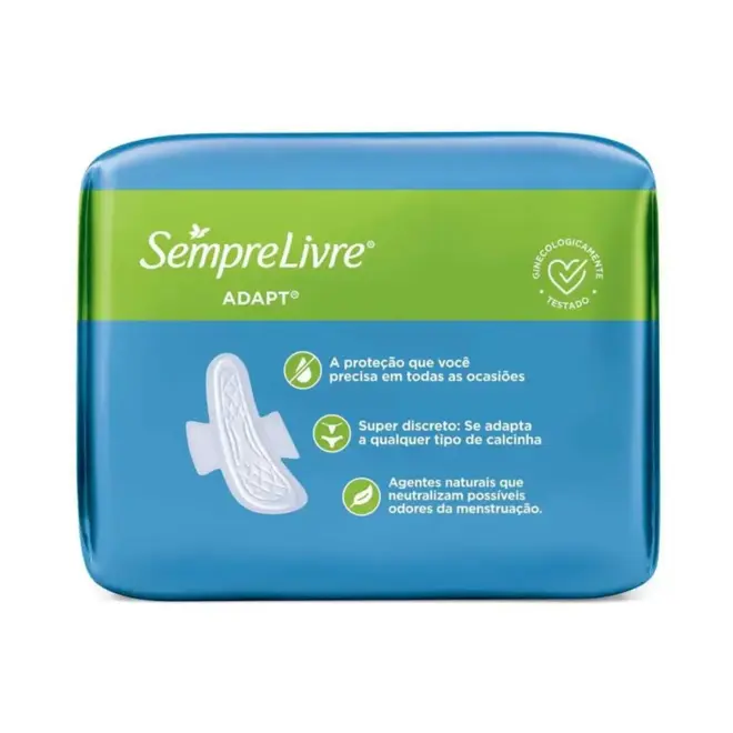 O Absorvente Sempre Livre Adapt possui abas para garantir a fixação e proporciona sensação de segurança. Sua cobertura suave oferece mais conforto no contato com a pele.