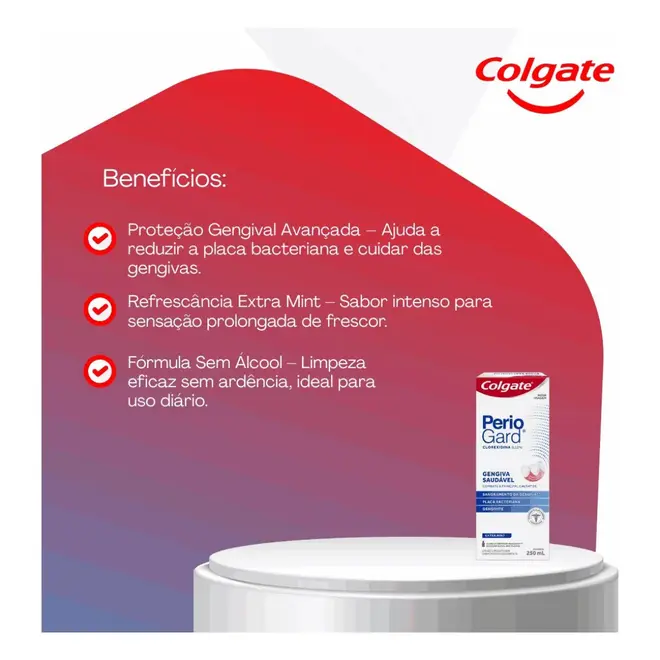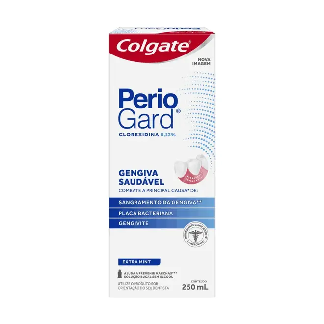 O Enxaguante Bucal Colgate PerioGard Extra Mint 250ml é uma solução bucal desenvolvida para auxiliar na saúde das gengivas e no controle da placa bacteriana.