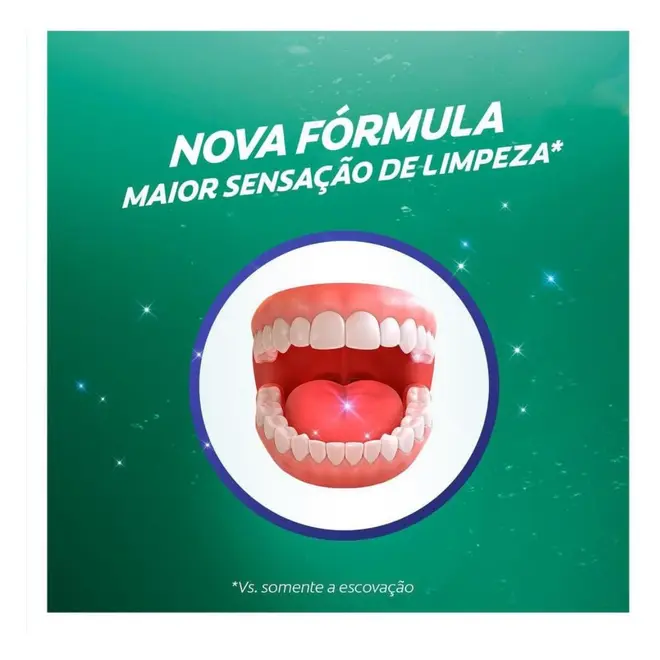 Com sabor Fresh Mint, oferece sensação intensa e duradoura de frescor, deixando a boca limpa e refrescante após o uso.