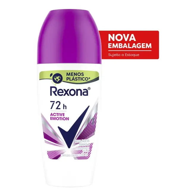 Sinta-se protegida e confiante com o Desodorante Antitranspirante Rexona Fem Roll On Active Emotion.