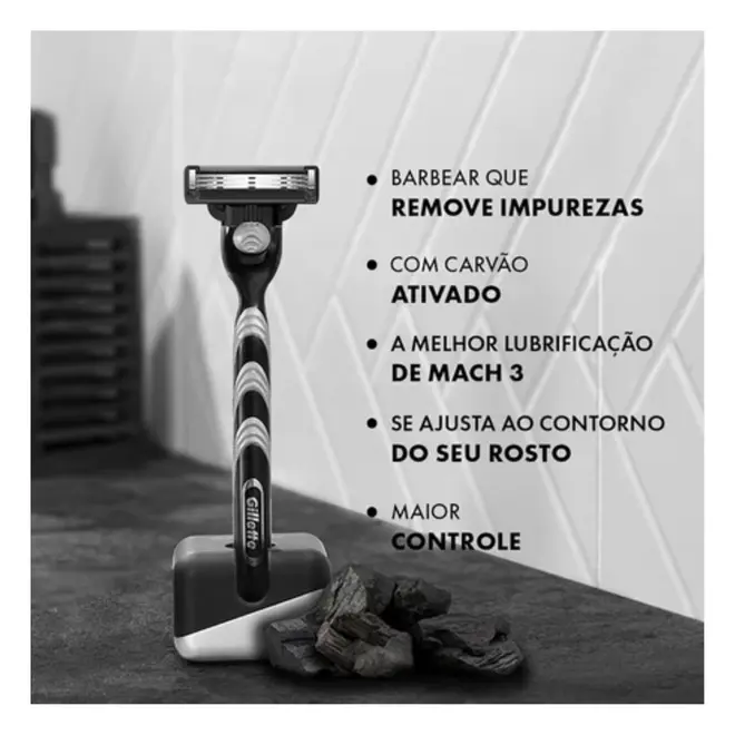 O Aparelho de Barbear Gillette Mach3 Carbono foi desenvolvido para proporcionar um barbear mais rente, confortável e eficiente. Equipado com três lâminas de alta precisão e fita lubrificante com carvão, ajuda a deslizar suavemente sobre a pele, reduzindo irritações e proporcionando um acabamento uniforme.