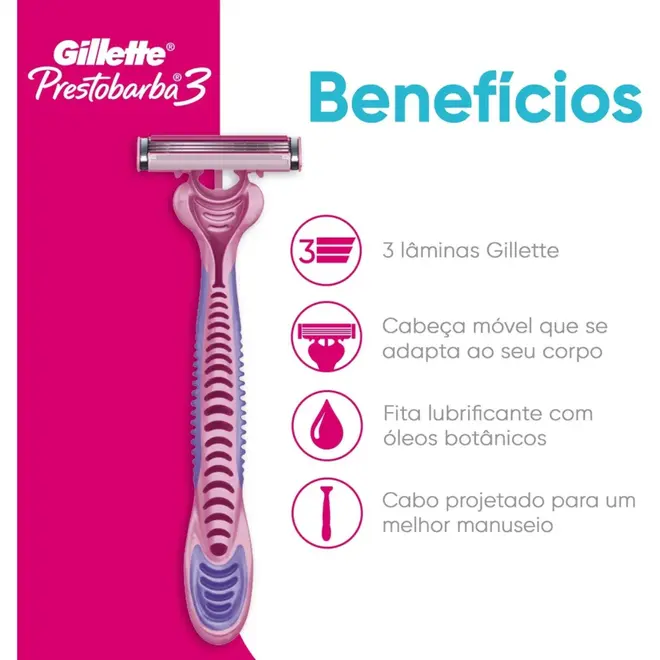 Aparelho de Depilação Descartável Gillette Prestobarba3 For Women 2 Unidades