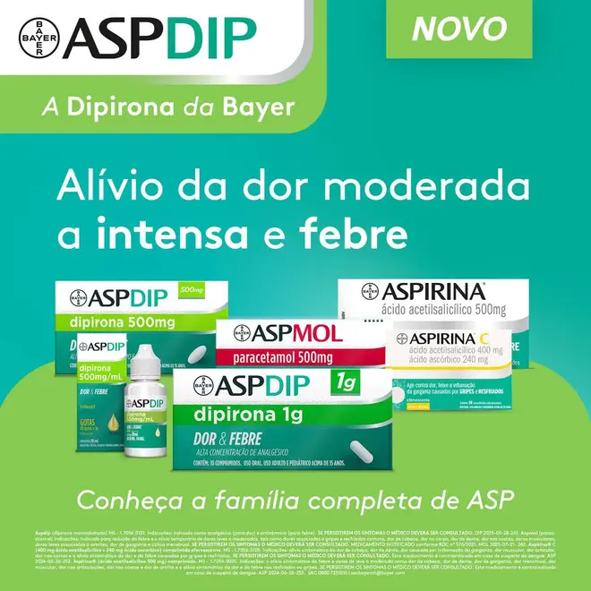 O Aspdip é um medicamento à base de dipirona, indicado para o tratamento de dores intensas e febre. Com ação rápida, é amplamente utilizado por adultos e adolescentes acima de 15 anos, proporcionando alívio eficaz em cerca de 30 a 60 minutos após a administração.