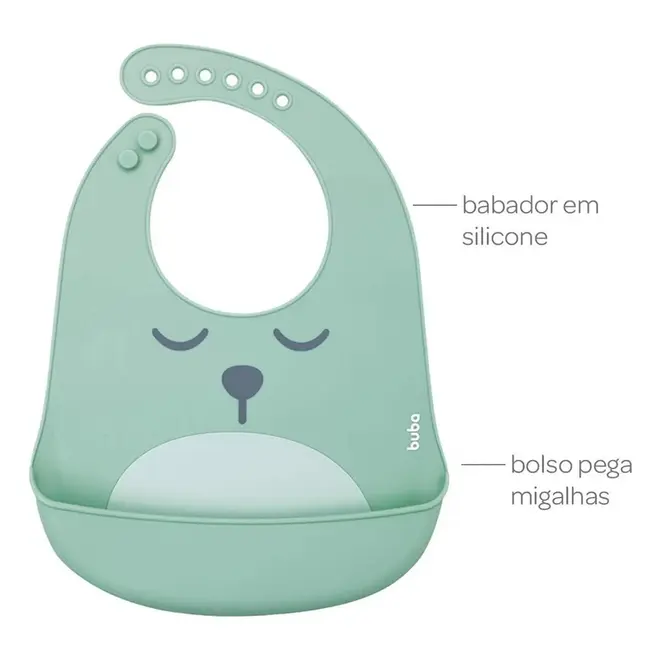 Babador Silicone Buba Impermevel Pega Migalhas Gumy Verde
