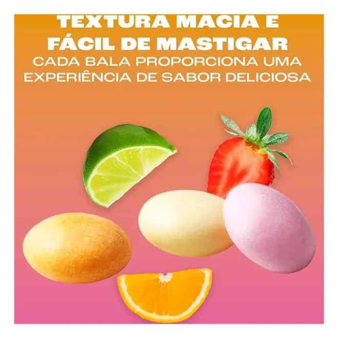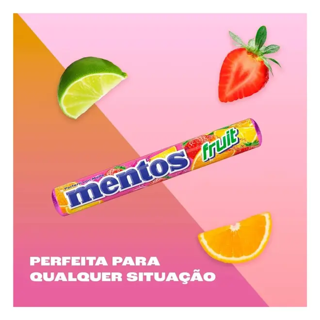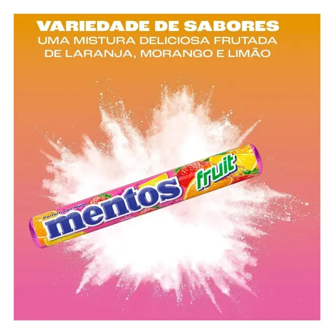 A Bala Mentos Fruit é um clássico mundial da Perfetti Van Melle, conhecida por sua casquinha crocante e recheio macio e mastigável. Este mix traz o sabor refrescante e natural das frutas selecionadas, oferecendo uma combinação deliciosa de Morango, Laranja e Limão em cada rolo.