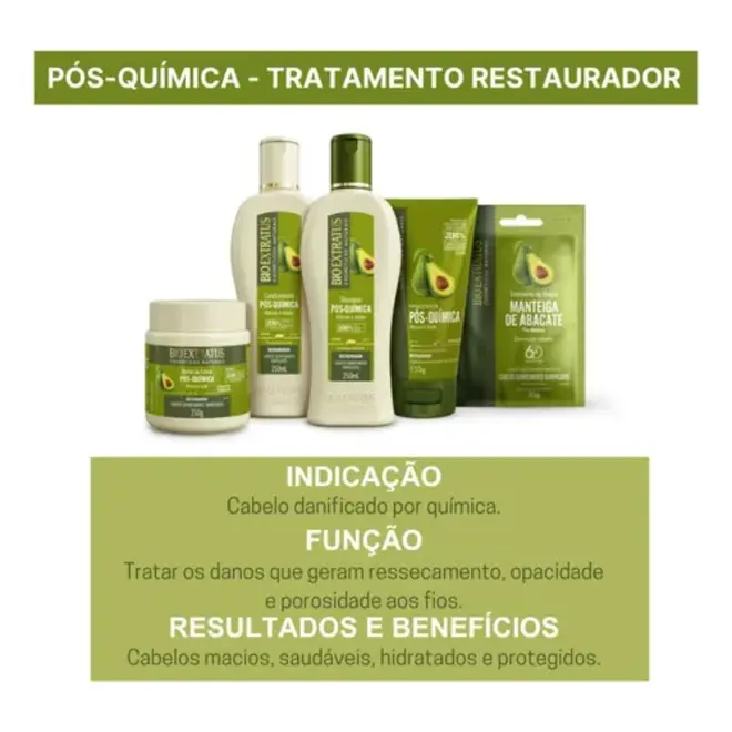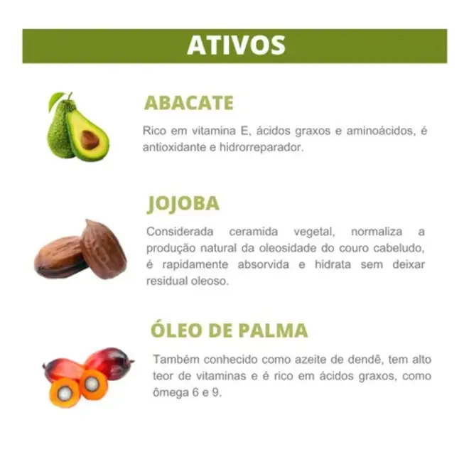 Sua fórmula com abacate e jojoba promove reposição de nutrientes, hidratação intensa e recuperação da fibra capilar fragilizada por processos químicos como alisamentos, colorações e descolorações.