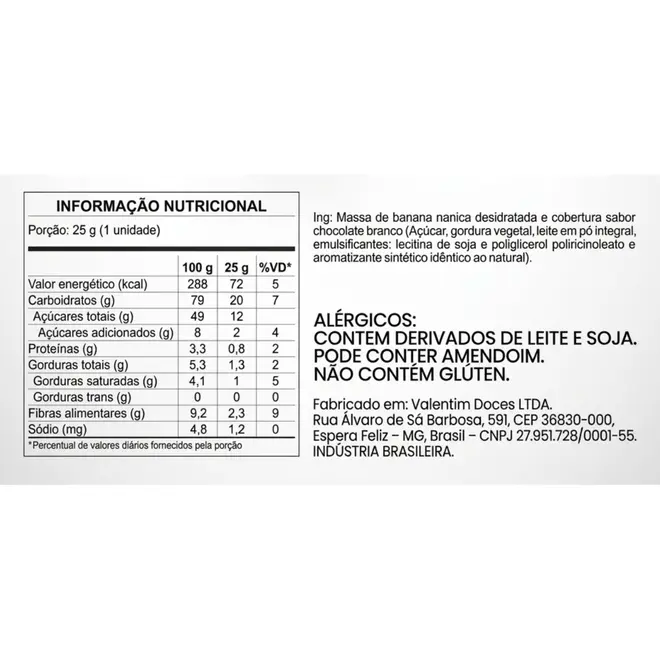 Barra De Banana Passa com Chocolate Branco 25g