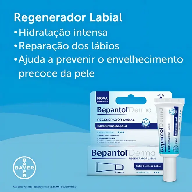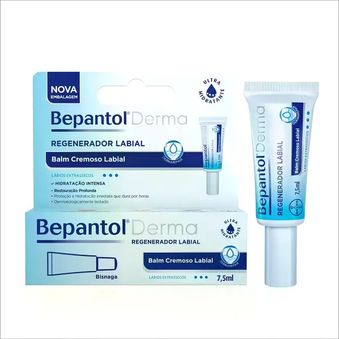 Bepantol Derma Regenerador Labial 7,5ml foi desenvolvido para hidratar intensamente e ajudar na recuperação dos lábios ressecados e sensíveis. Sua fórmula combina dexpantenol (pró-vitamina B5) e vitamina E, ativos que auxiliam na restauração da barreira natural dos lábios e ajudam a prevenir o ressecamento.
