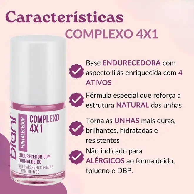 O Complexo 4X1 é uma base endurecedora com aspecto lilás enriquecida com 4 ativos.