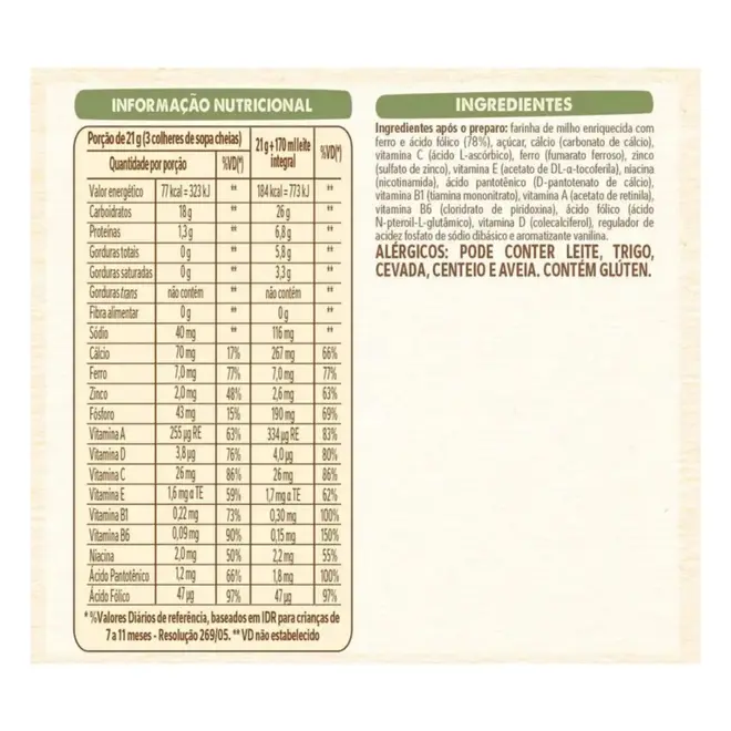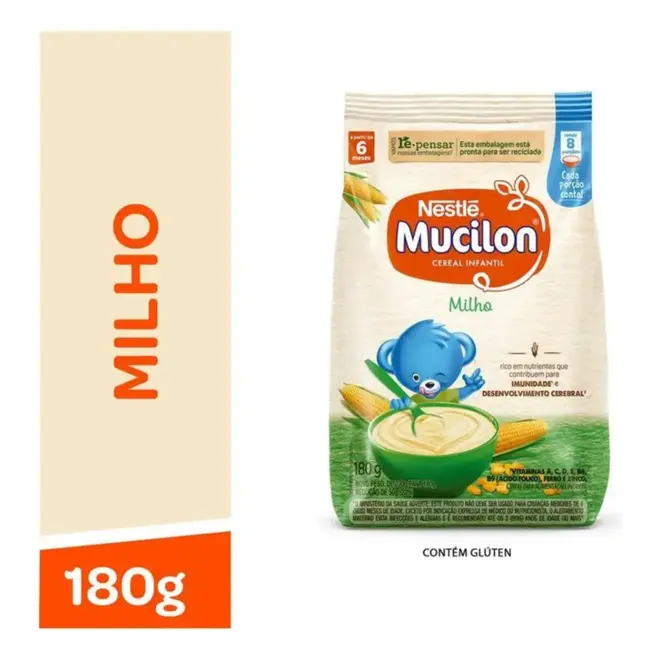 O Mucilon Milho é um cereal infantil da Nestlé desenvolvido para compor a alimentação de bebês a partir dos 6 meses de idade, fase em que a introdução alimentar se torna essencial para o crescimento. Elaborado com milho selecionado, oferece uma textura suave e um sabor delicado que agrada o paladar infantil, facilitando a aceitação de novos alimentos.