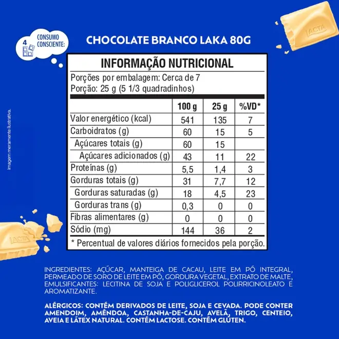 Produzido pela Lacta, o Laka é um dos chocolates brancos mais tradicionais do Brasil, ideal para ser consumido puro, compartilhado ou utilizado no preparo de sobremesas, recheios e receitas. A embalagem de 80g é prática e fácil de levar na bolsa, mochila ou lancheira.