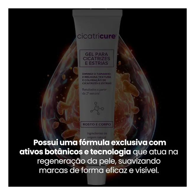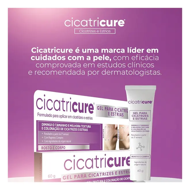 Desenvolvido especialmente para tratar cicatrizes e estrias, o Cicatricure Gel com sua tecnologia inovadora Regenext, repara e hidrata a pele, uniformizando a cor e a textura da cicatriz ou estria em relação ao resto da pele.