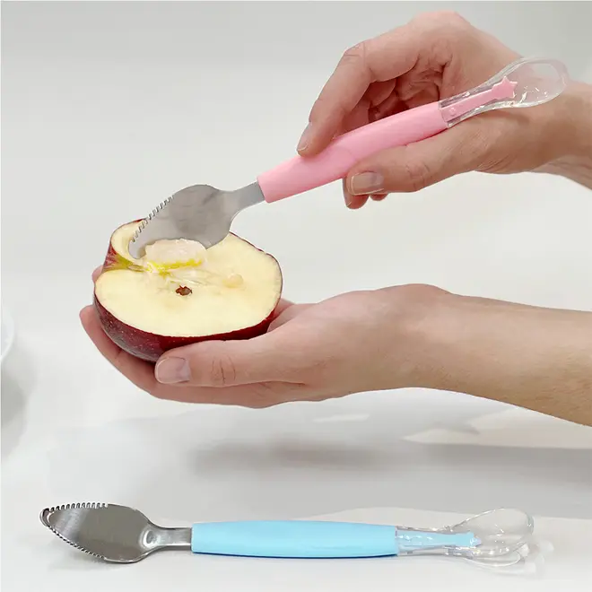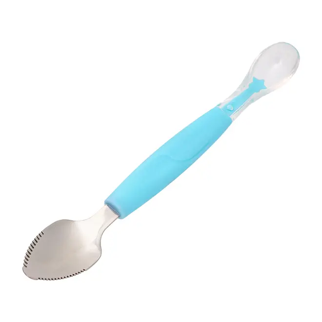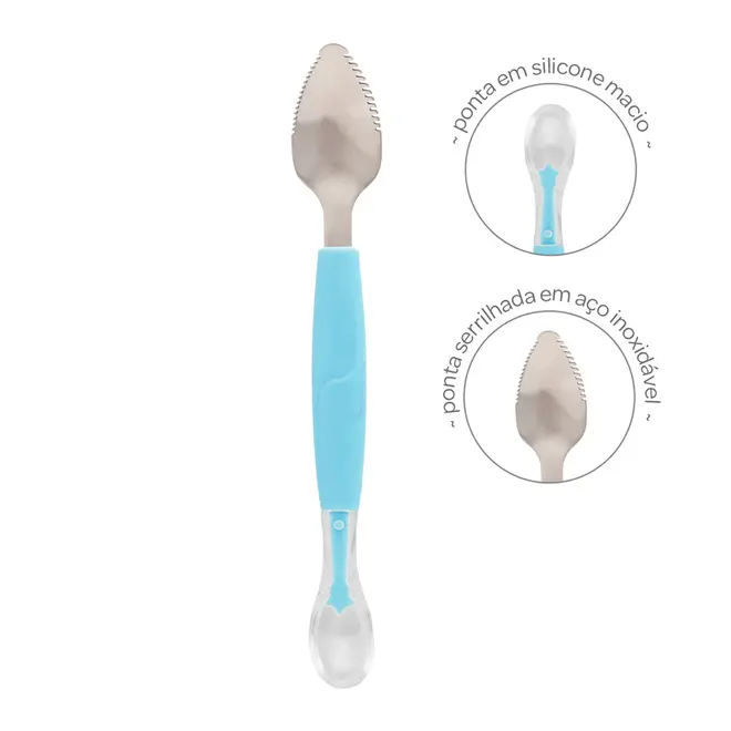 Colher 2 em 1 Buba Raspa Fruta em Inox e Silicone Azul