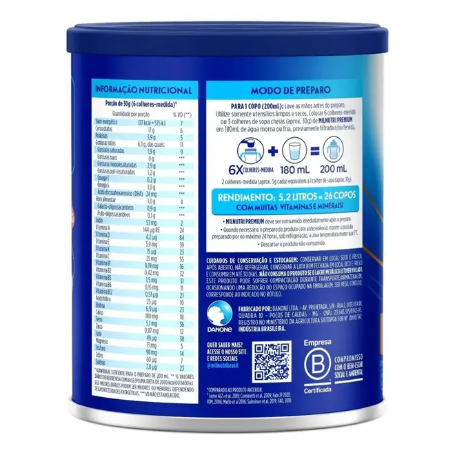 Com o Composto Lácteo Milnutri Premium 800g, você oferece à sua família um alimento rico em nutrientes essenciais para uma vida saudável, com praticidade e qualidade para o dia a dia.