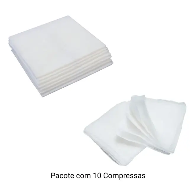 Produzida em 100% algodão, possui 11 fios por cm², garantindo boa absorção de líquidos e secreções. As compressas são esterilizadas e embaladas individualmente, proporcionando mais segurança e higiene durante o uso.