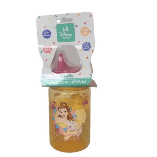 Copo Princesas Disney com Tampa e Válvula Redutora de Pingos Baby Go 340 ml