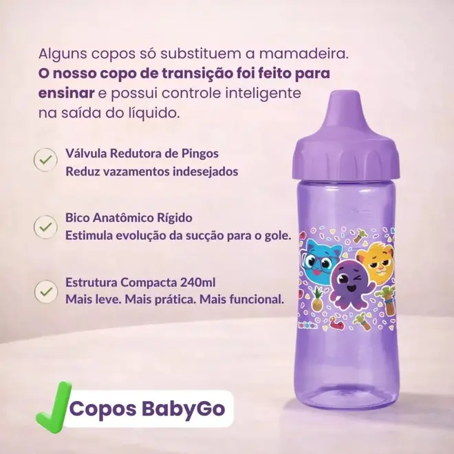 O Copo de Treinamento Bolofofos Baby 240ml é a solução ideal para os pais que desejam incentivar a autonomia dos bebês durante a fase de transição para copos comuns. Com um design lúdico e inspirado nos adoráveis personagens dos Bolofofos, este copo é feito pela BabyGo, oferecendo qualidade e segurança para o seu pequeno. Ele possui uma tampa com válvula antipingo, que reduz o risco de derramamentos e garante que a bebida não escorra, proporcionando uma experiência prática e tranquila para os pais e crianças.