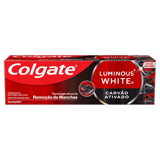 O Creme Dental Colgate Luminous White Carvão Ativado 70g foi desenvolvido para proporcionar limpeza profunda e auxiliar na remoção de manchas superficiais dos dentes.