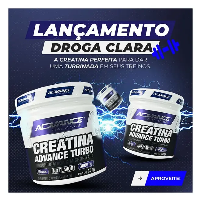 🛒 Adquira agora a sua Creatina Advance Turbo No Flavor 300g e maximize os seus treinos com qualidade!
