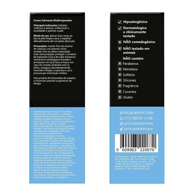 - Creme Calmante Multirreparador Principia CM-01 40g
