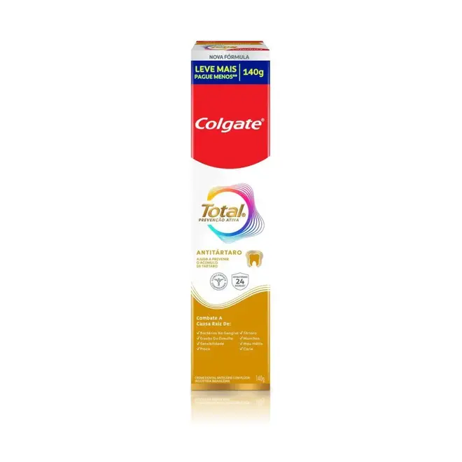 O Creme Dental Colgate Total 12 Anti Tártaro 140g foi desenvolvido para oferecer proteção completa para a saúde bucal, ajudando a combater o acúmulo de tártaro e manter dentes e gengivas mais saudáveis.