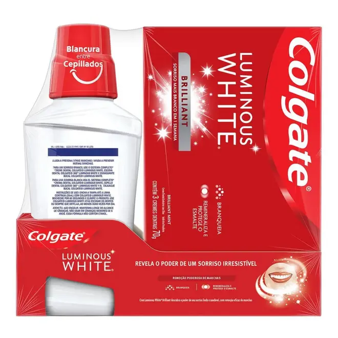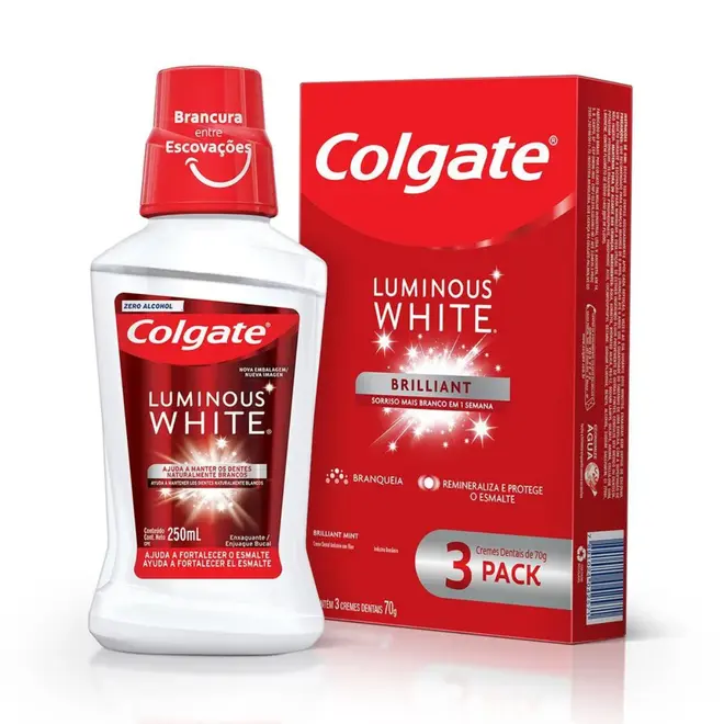 Creme Dental Colgate Luminous White Mint 3 Unidades de 70g cada e Ganhe Enxaguante Bucal Luminous White 250ml
