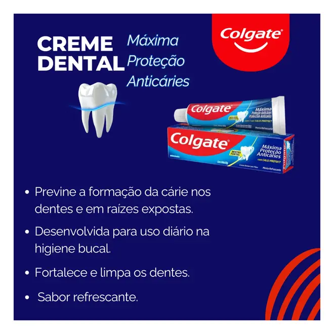 O Creme Dental Colgate Máxima Proteção Anticáries 50g foi desenvolvido para proporcionar limpeza eficaz dos dentes e ajudar na proteção contra cáries.
