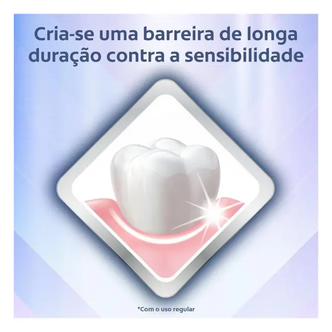 Sua fórmula avançada ajuda a criar uma barreira protetora sobre a dentina exposta, proporcionando alívio imediato da sensibilidade causada por alimentos quentes, frios, doces ou ácidos.