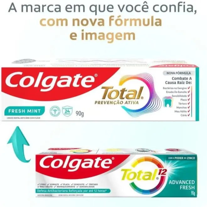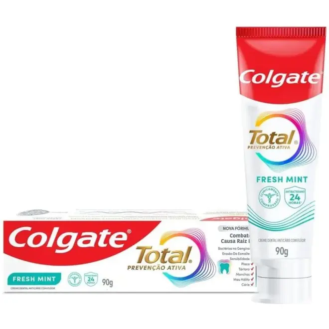 O Creme Dental Colgate Total 12 Advanced Fresh 90g oferece proteção completa para a saúde bucal, cuidando de dentes, gengivas e hálito com alta eficácia. Sua fórmula avançada conta com tecnologia antibacteriana que ajuda a combater as bactérias por até 12 horas, promovendo uma limpeza profunda e duradoura.