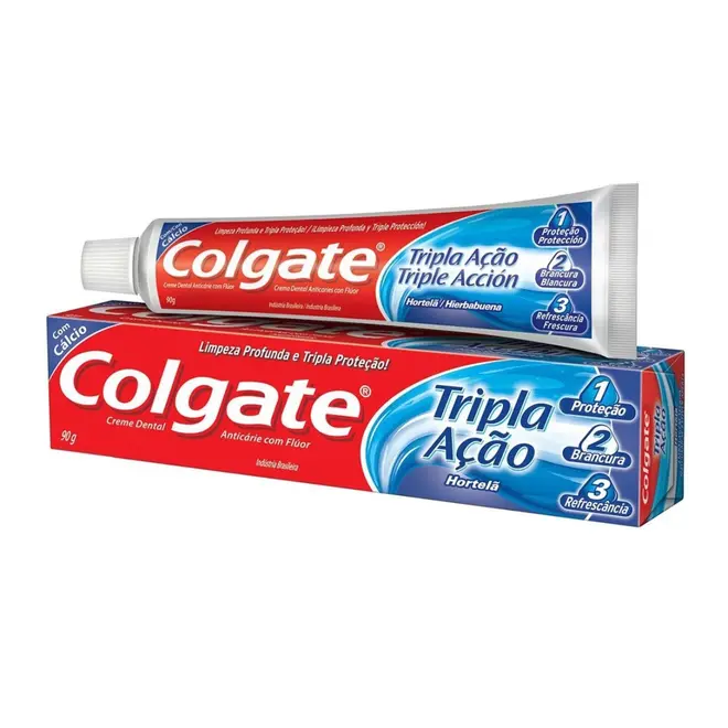 O Creme Dental Colgate Tripla Ação Hortelã 90g proporciona limpeza eficiente e proteção completa para a saúde bucal. Sua fórmula com flúor e cálcio auxilia na prevenção de cáries, ajuda a manter os dentes mais brancos e garante hálito fresco por mais tempo.