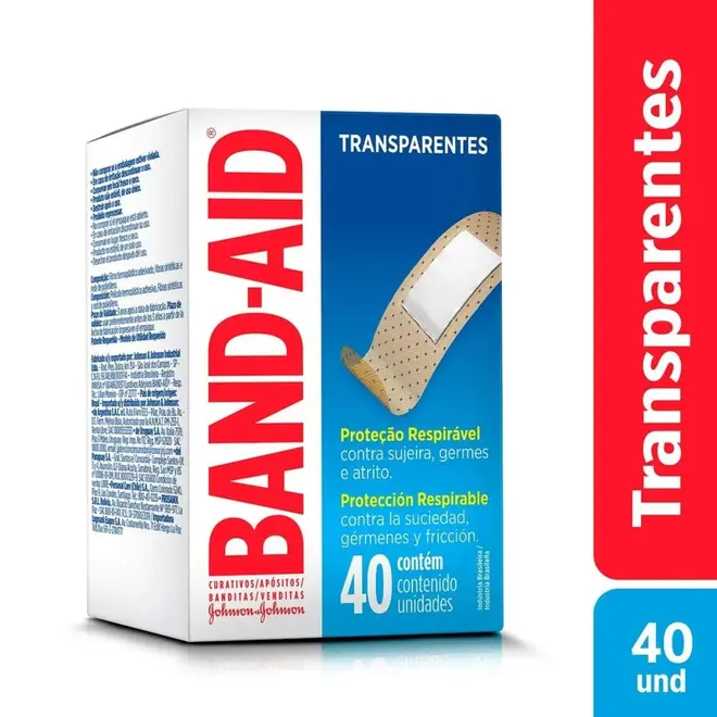 BAND-AID® Transparentes está disponível em embalagem de 40 e 10 unidades.