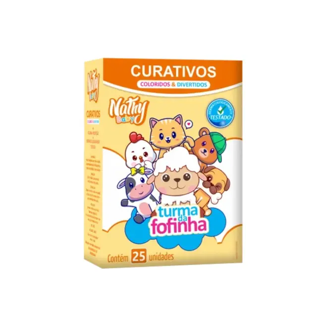 O que é e para que serve: Os Curativos Nathy Baby Turma da Fofinha (25 unidades) são adesivos de proteção infantil desenvolvidos especialmente para cobrir pequenos ferimentos, cortes, arranhões e vacinas. Com estampas divertidas dos personagens da "Turma da Fofinha", eles servem para transformar o momento do cuidado em uma distração lúdica para a criança, ao mesmo tempo em que protegem a lesão contra sujeira e bactérias.