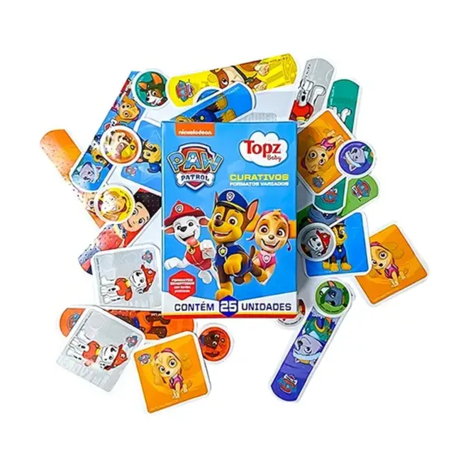 Com estampas dos personagens da Patrulha Canina, os curativos ajudam a tornar o momento do curativo mais agradável para os pequenos. Possuem formatos variados e bordas protetoras, que auxiliam na fixação e proteção da área lesionada.