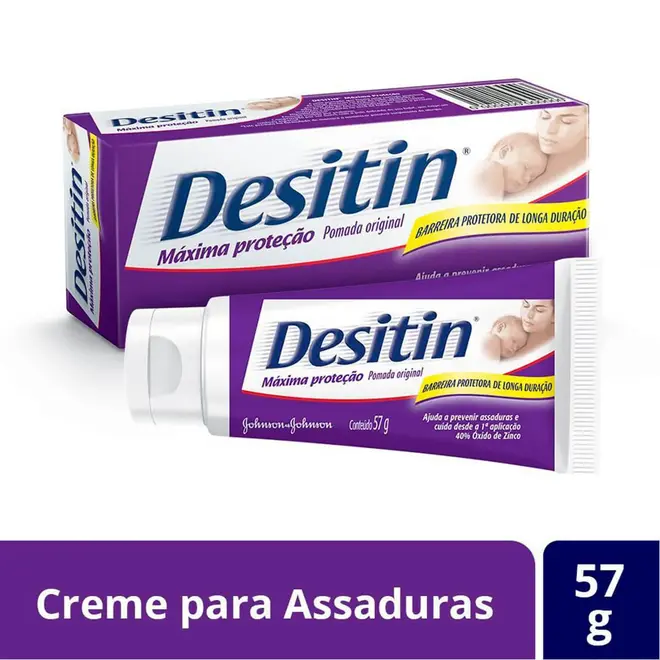 Desitin Máxima proteção é uma pomada que auxilia na prevenção de assaduras e irritações na pele do bebê. Sua fórmula é composta 40% por óxido de zinco, ingrediente eficaz na hidratação, na recuperação da pele e na prevenção de vermelhidão e assaduras.