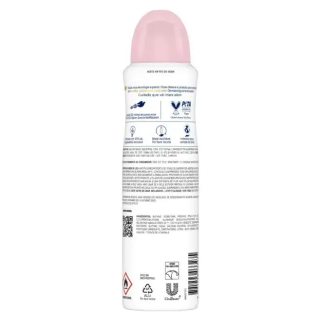 O Desodorante Antitranspirante Aerosol Dove Beauty Finish foi desenvolvido para proporcionar uma pele das axilas visivelmente mais macia e bonita. Sua fórmula exclusiva contém 1/4 de creme hidratante enriquecido com Vitamina E, que auxilia na recuperação da pele após a depilação, mantendo-a hidratada e cuidada.