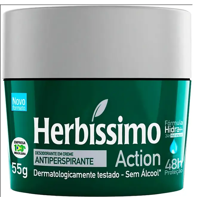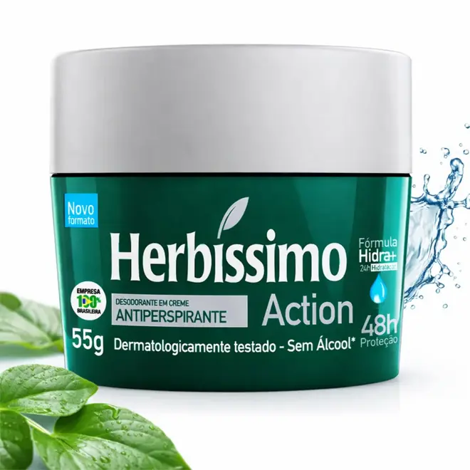 O Creme Desodorante Antiperspirante Action possui fórmula especialmente desenvolvida com glicerina vegetal e óleo de girassol, que promovem a hidratação das axilas por até 24 horas.