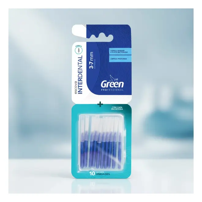 A Escova Interdental Green Profissional Cônica 3,7mm foi desenvolvida para proporcionar limpeza profunda entre os dentes, removendo resíduos de alimentos e placa bacteriana em áreas onde a escova convencional não alcança.