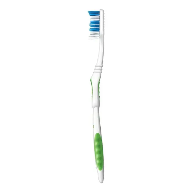 Cerdas macias e em formato "V" tem profundo alcance para uma melhor limpeza entre os dentes;