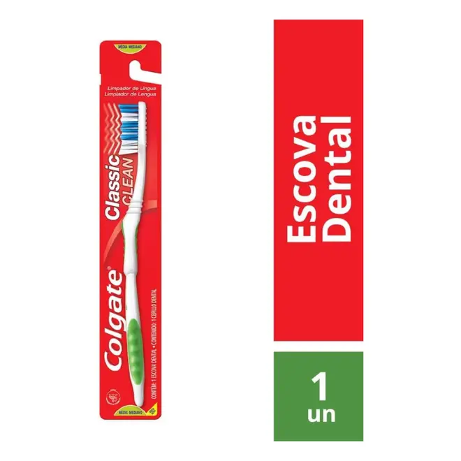 A Escova Dental Colgate Classic Clean Média foi desenvolvida para proporcionar uma limpeza eficaz e confortável durante a escovação diária.