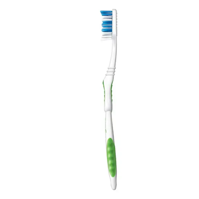 Possui cerdas de dureza média, que ajudam a remover a placa bacteriana e os resíduos de alimentos de forma eficiente, contribuindo para a saúde dos dentes e gengivas. Seu cabeçote com limpador de língua auxilia na remoção de bactérias causadoras do mau hálito, promovendo uma higiene bucal mais completa.