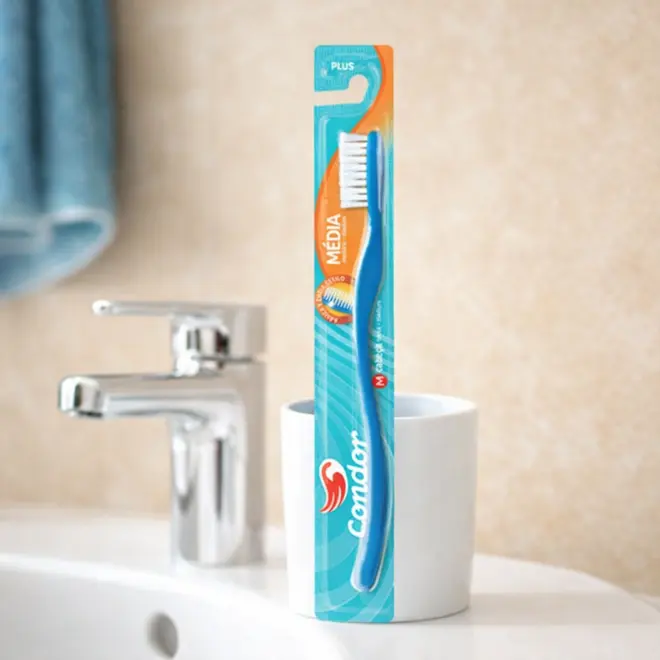 Ideal para o uso diário, a Escova Dental Condor Plus combina qualidade, conforto e eficiência, sendo uma ótima escolha para cuidar do seu sorriso com confiança.
