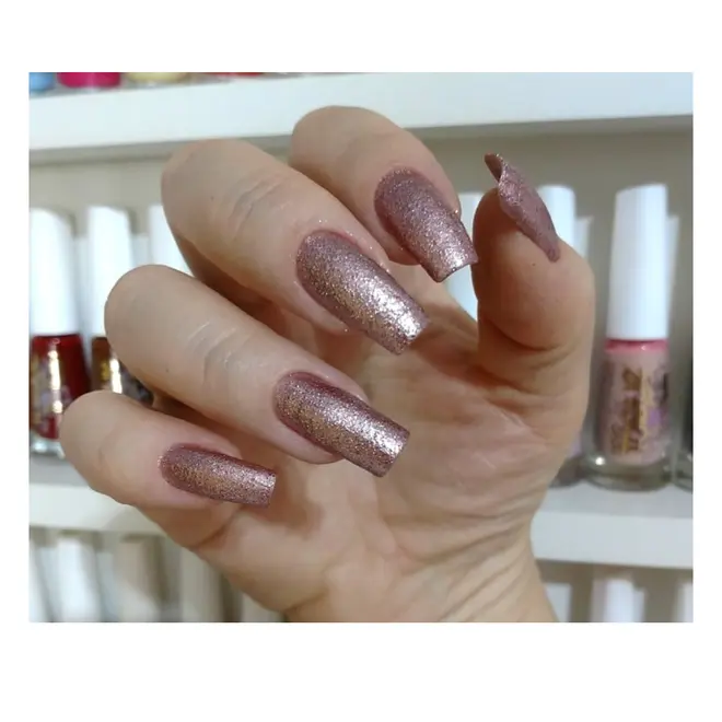 Efeito Areia Líquida: Acabamento tátil diferenciado que dispensa o uso de finalizadores brilhantes.