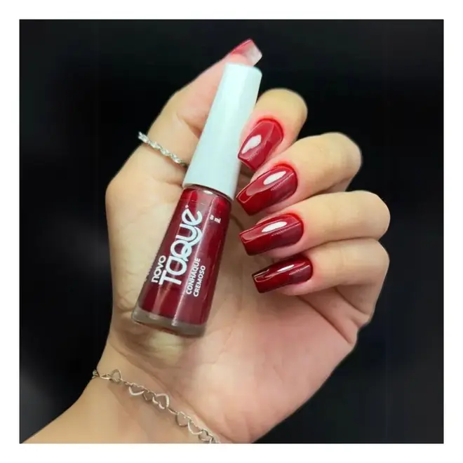 O Esmalte Novo Toque na cor Conhaque é a personificação da elegância clássica e do poder. Com um tom de vermelho fechado e profundo, esta cor da linha cremosa oferece um acabamento sofisticado que nunca sai de moda, sendo perfeita para quem busca um visual marcante, porém atemporal.