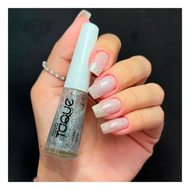 Aplicação Fluida: Textura que facilita a distribuição uniforme do glitter sobre a unha.