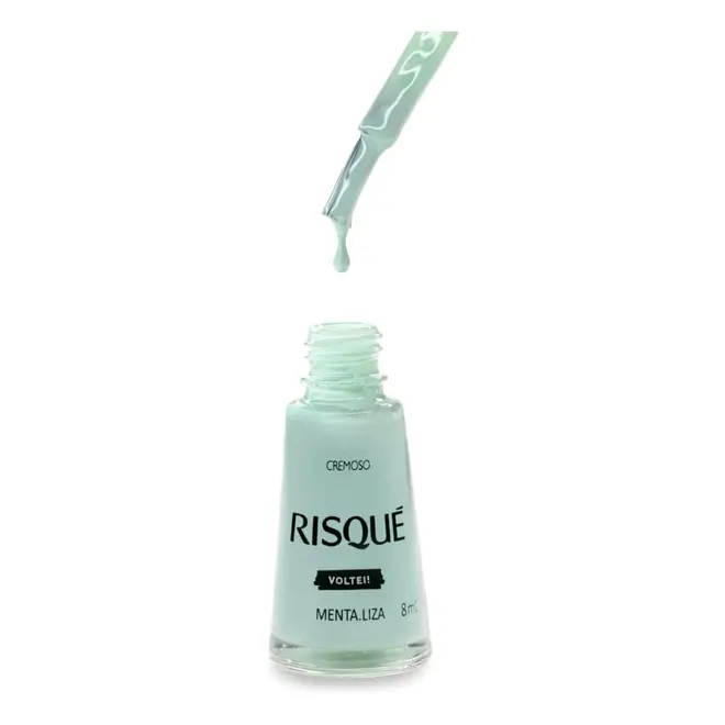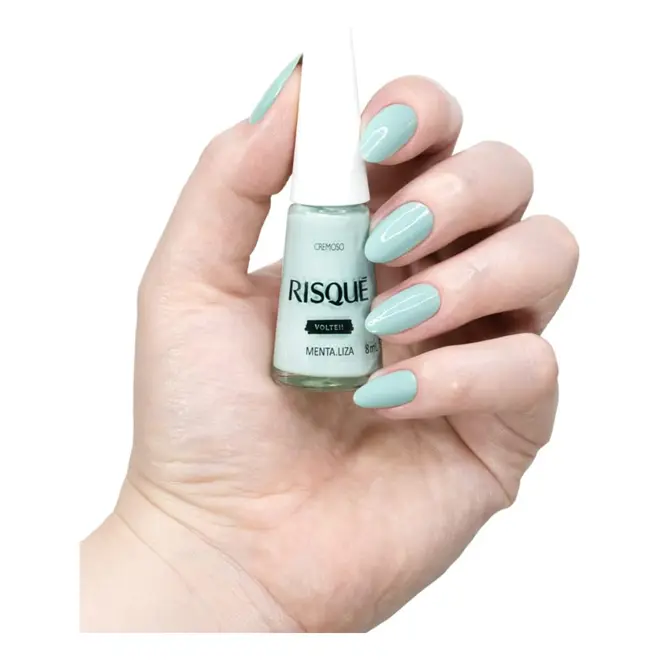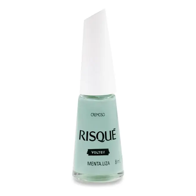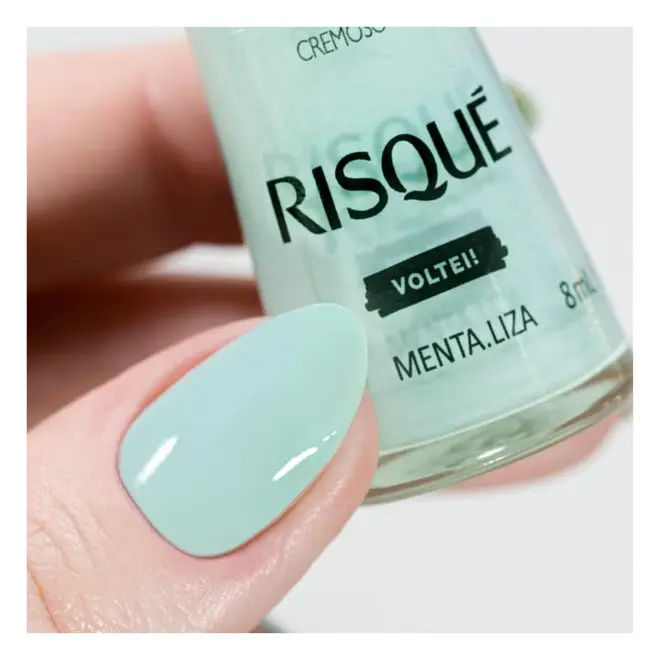 O Esmalte Risqué Menta Liza possui cor verde menta suave com acabamento cremoso, ideal para quem busca um visual moderno e delicado nas unhas.