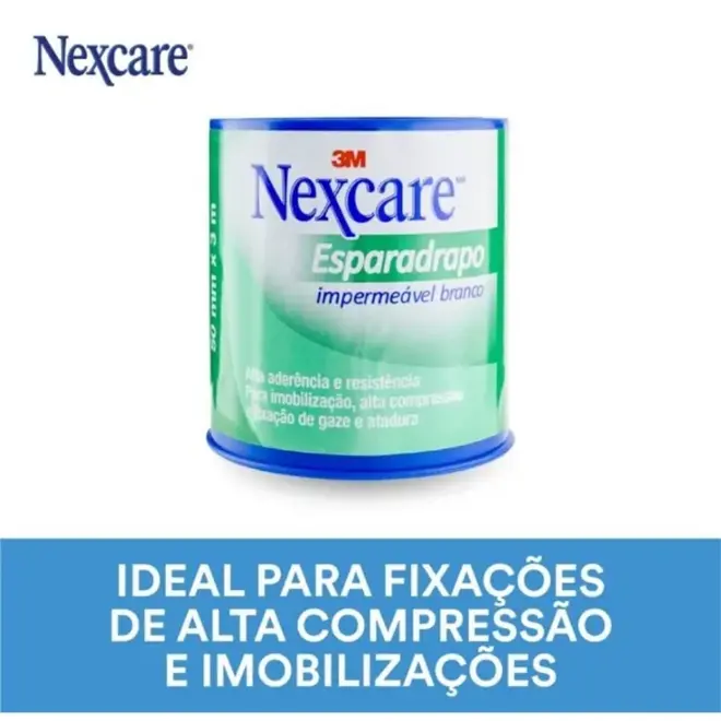 O Esparadrapo Impermeável Nexcare Branco é uma fita mais tradicional, bastante resistente e com alta aderência. É ideal para fixações de alta compressão e imobilizações, sendo utilizado sobre gaze ou fita.