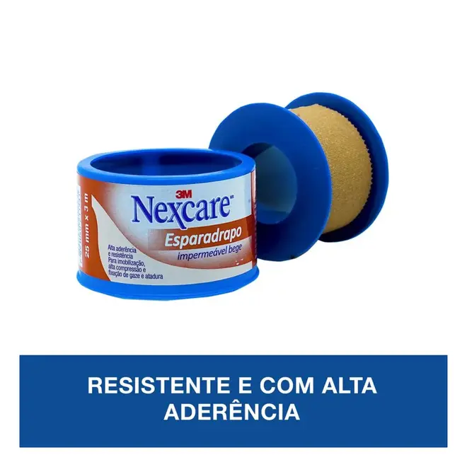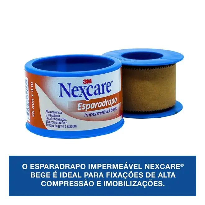 O Esparadrapo Nexcare Impermeável Bege 25 mm x 3 m é indicado para fixação segura de curativos, gazes, ataduras e compressas, oferecendo alta aderência e resistência.