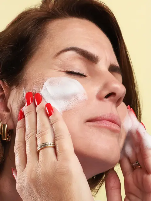 Espuma suave que limpa, hidrata e revitaliza a pele madura